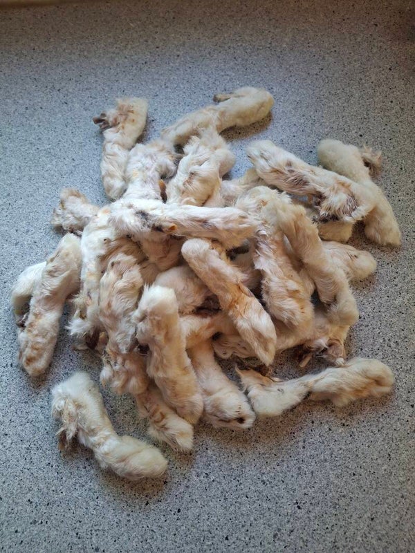 Pattes de lapins 100% naturelles, garanties sans aucun additif, colorant ni conservateur.
